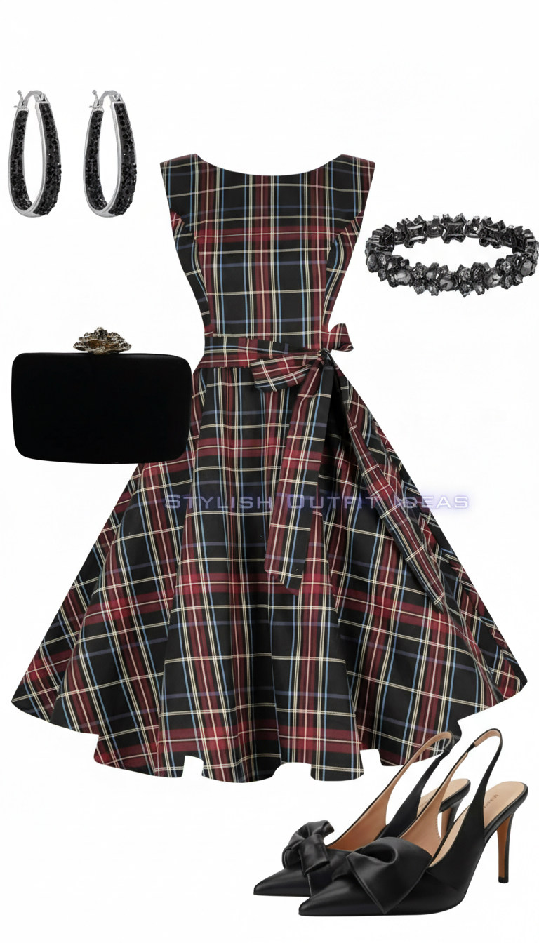 Vintage 1950s Plaid Cocktail Dress Outfit: Complete Evening Look