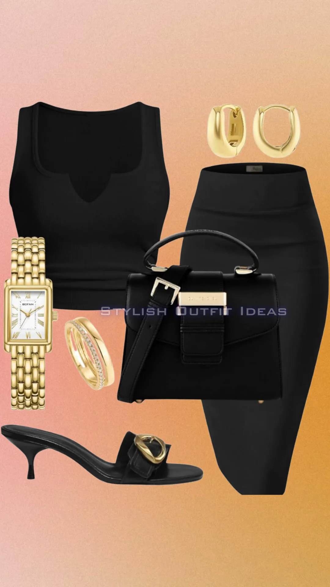 Discover how to style a chic all-black outfit with gold accessories. Complete look guide with…