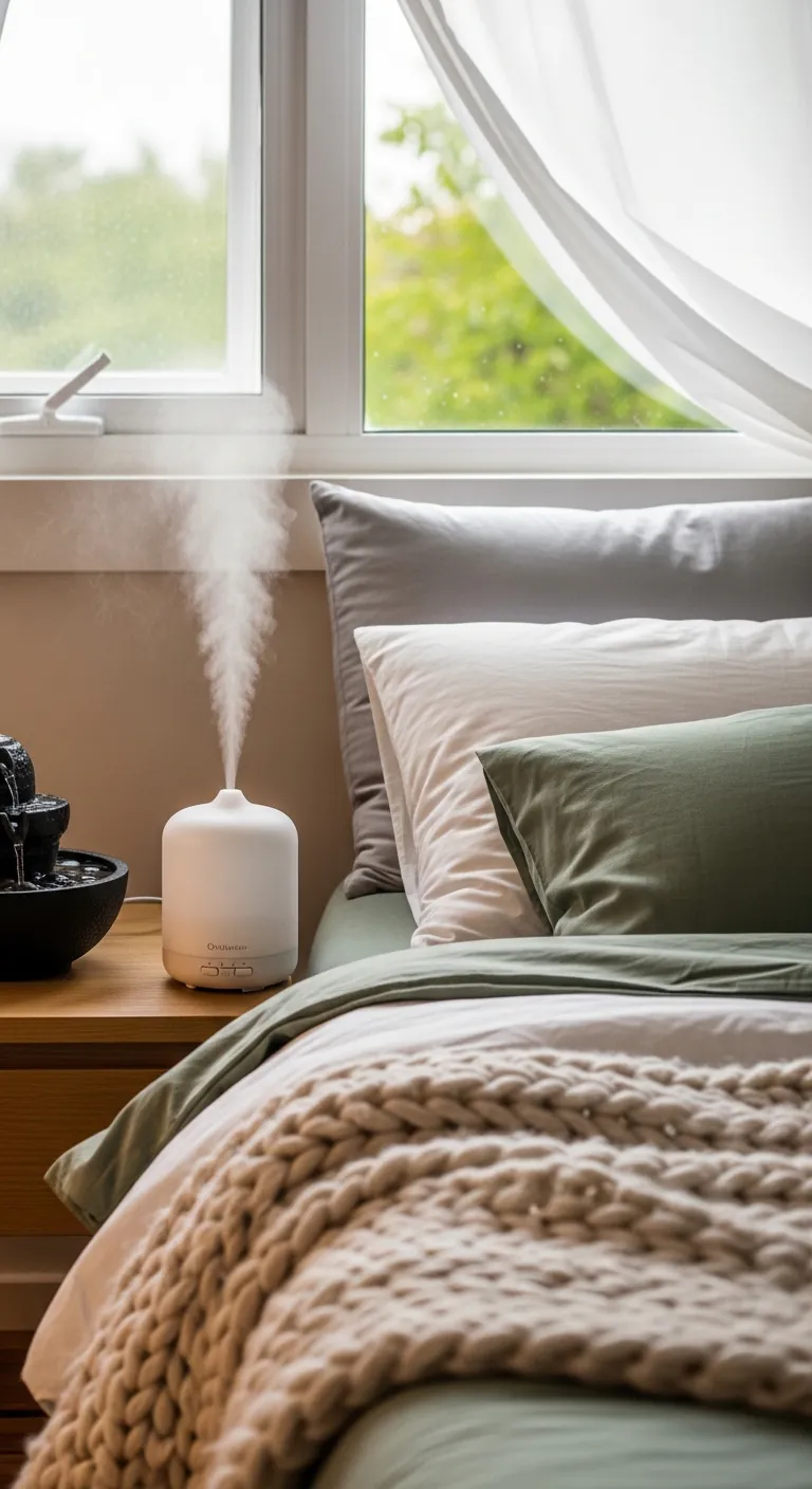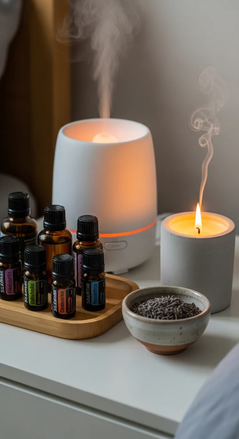 Choose calming scents with proven sleep benefits: lavender reduces anxiety and improves sleep quality, chamomile promotes relaxation, sandalwood grounds and centers, bergamot alleviates stress, and eucalyptus clears breathing. Use multiple delivery methods: an ultrasonic diffuser for adjustable ambient scent, quality candles for evening ritual (blow out before sleep for safety), linen spray for sheets and pillows, and sachets in drawers for subtle ongoing fragrance. Avoid synthetic fragrances and overwhelmingly strong scents; the goal is subtle, natural aroma that you notice on entry but doesn’t dominate. Change scents seasonally to prevent olfactory adaptation: perhaps lavender and chamomile in spring/summer, sandalwood and cedar in fall/winter. Scent creates powerful memory associations; your signature bedroom fragrance becomes linked with rest and restoration, triggering relaxation the moment you smell it.