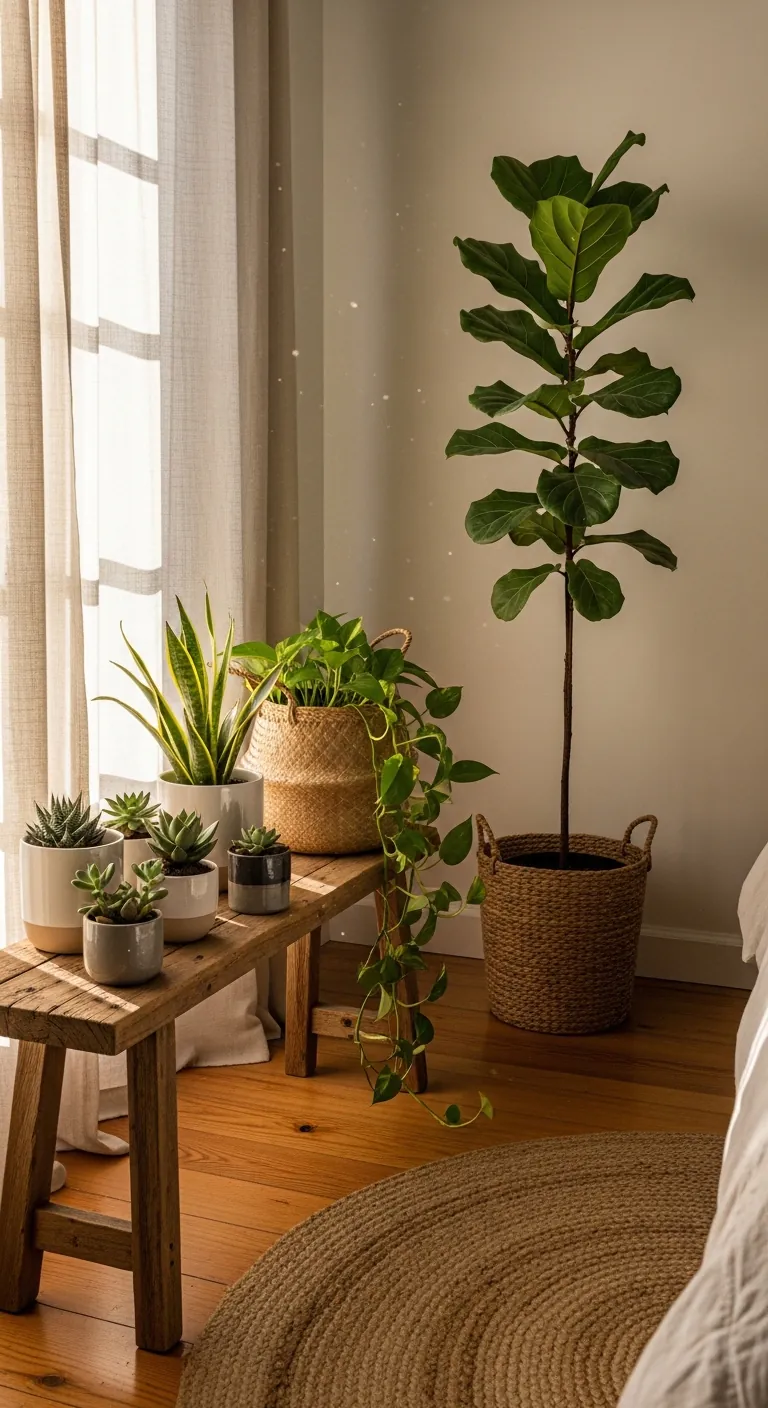Start by maximizing natural light—remove heavy drapery and opt for sheer curtains that filter rather than block sunlight. Choose furniture crafted from solid wood, rattan, or bamboo, and layer in natural textiles like organic cotton bedding, linen throws, and wool or jute rugs. Introduce carefully selected plants: snake plants and pothos thrive in low light, while peace lilies and ferns love humidity. Don’t overcrowd—three to five thoughtfully placed plants create impact without overwhelming. Add a small tabletop water fountain for ambient sound and increased humidity, and consider nature-inspired artwork or botanical prints to reinforce the connection. The goal is to blur the boundary between indoors and outdoors, creating a space that breathes and lives alongside you.