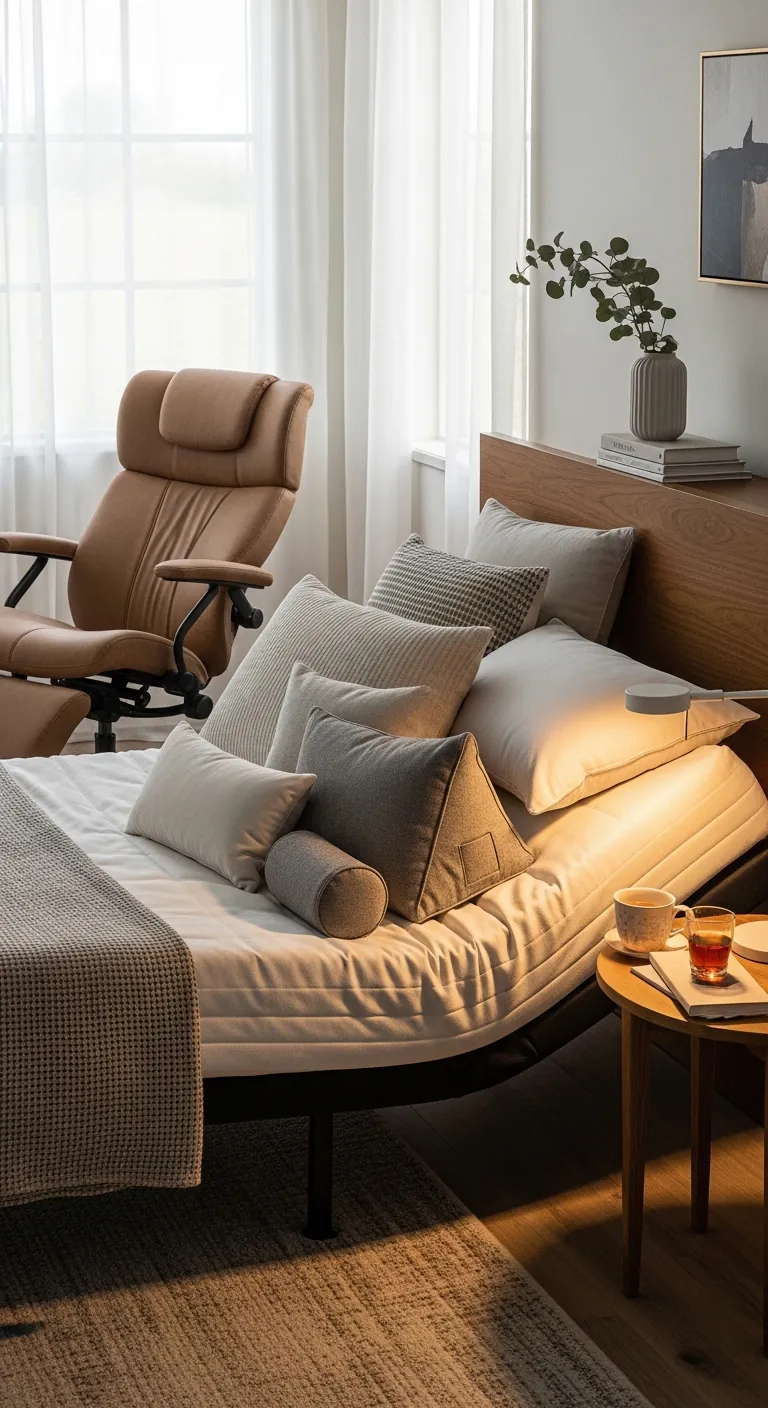 Start with your mattress—invest in quality that matches your sleep position and body type. Consider an adjustable base that elevates your head for reading or feet for circulation. Choose nightstands that position necessities at easy reaching height from bed (typically 24-28 inches depending on mattress height). If your bedroom includes seating, prioritize ergonomic support over aesthetic alone—a beautiful chair you can’t comfortably sit in for reading serves no purpose. Consider your pillow arrangement not just decoratively but functionally: do you have proper support for various positions? Reading in bed, watching television, or working on a laptop all require different support than sleeping. This attention to ergonomics doesn’t compromise aesthetics—it ensures your beautiful bedroom also supports your body properly, preventing the aches and pains that accumulate from poorly designed spaces.