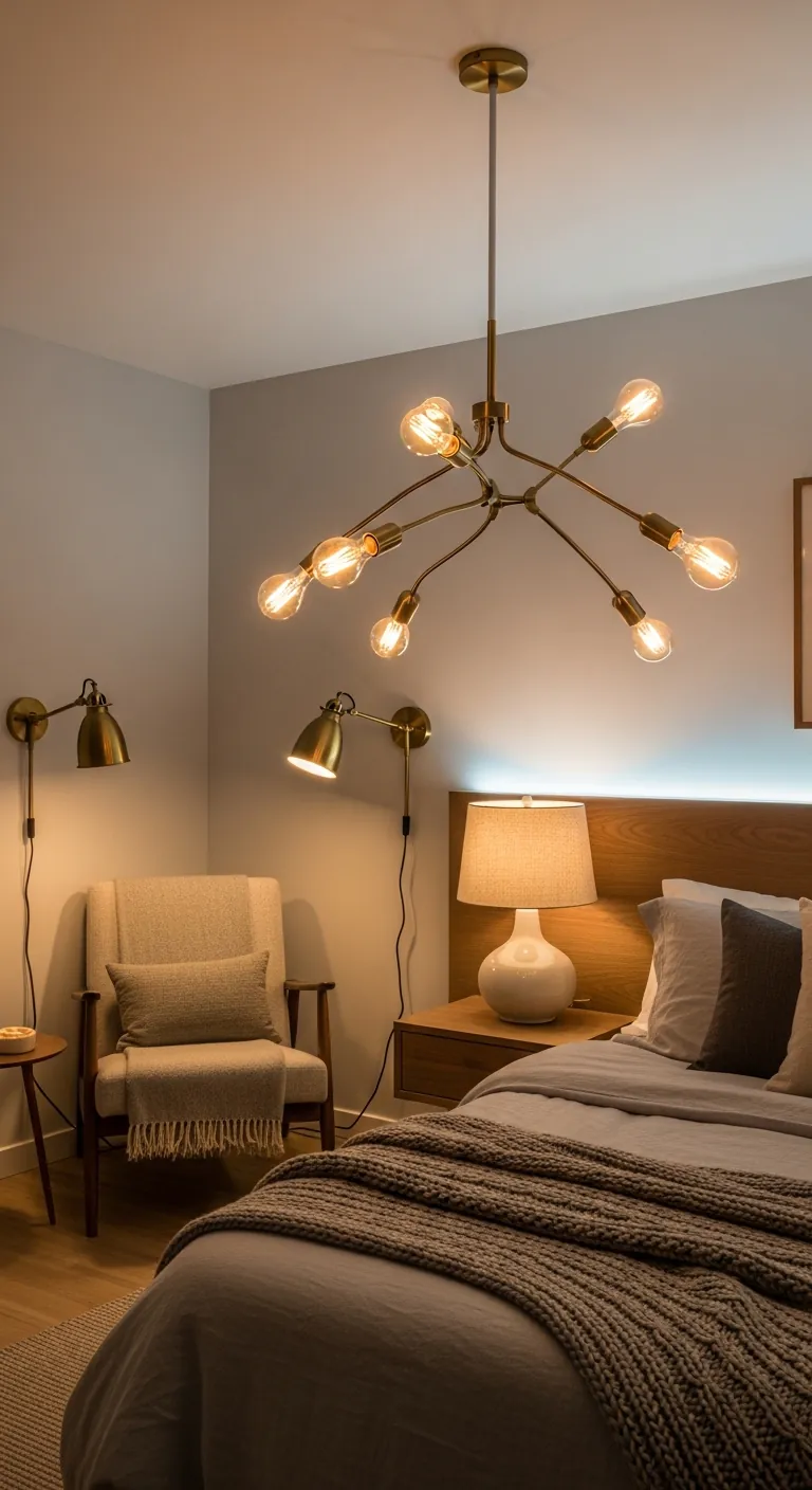 Start by assessing needs: you need reading light (task), general illumination (ambient), and mood creation (accent). Install dimmer switches on all sources for maximum flexibility. Choose warm-toned bulbs (2700K-3000K) that mimic natural evening light rather than harsh cool whites. Layer your sources: perhaps a statement pendant or chandelier for ambient light, adjustable wall sconces or bedside lamps for reading, and accent lighting—LED strips behind headboards, uplighting on plants, or small decorative lamps—for atmosphere. Avoid positioning lights directly overhead of the bed; off-center or side lighting is more flattering and relaxing. The result is a room that can shift from energizing morning brightness to soothing evening dimness with simple adjustments, supporting your natural rhythms.