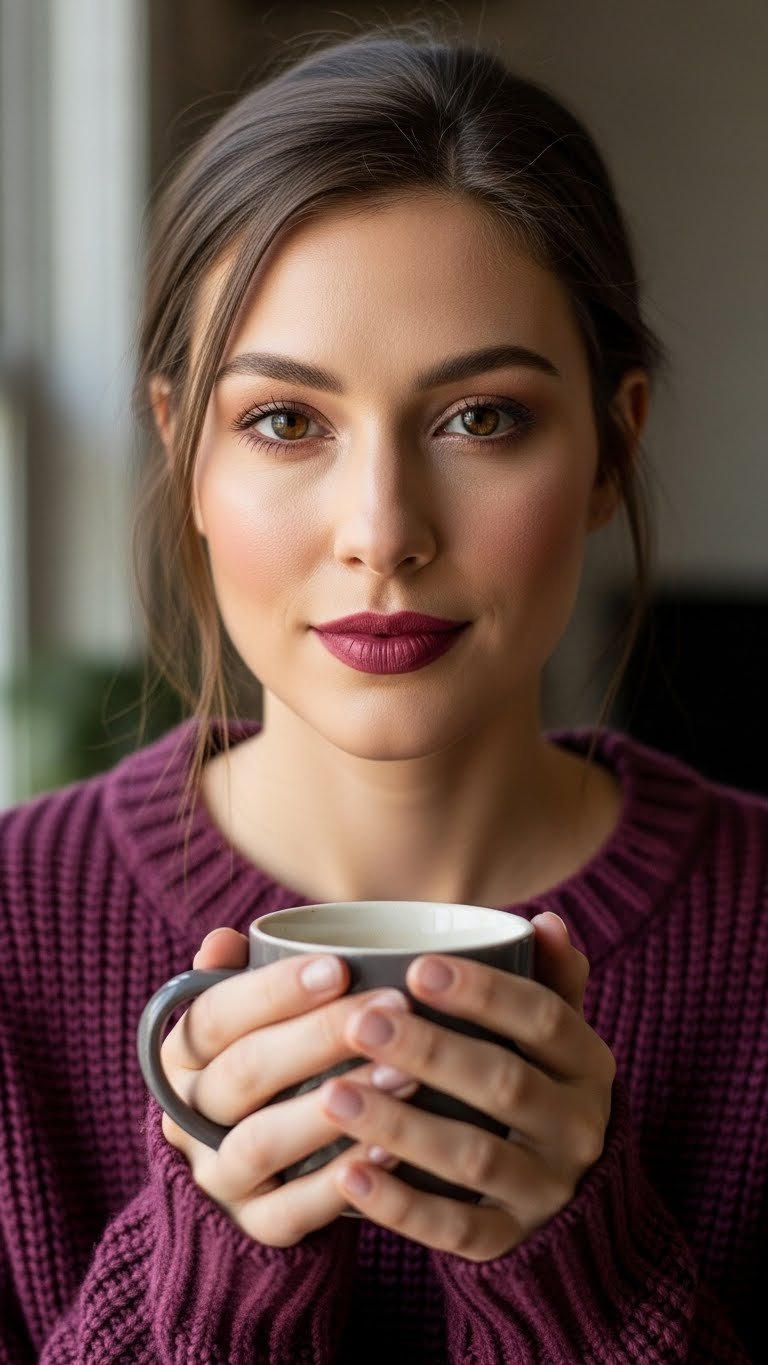 The “soft focus” trend is big for 2026—think slightly diffused edges, creamy textures, and everything looking like it’s viewed through flattering evening light. For fall, this translates into berry-toned blush, blurred berry lips, and minimal eye makeup that lets the color story stay concentrated around the center of the face.