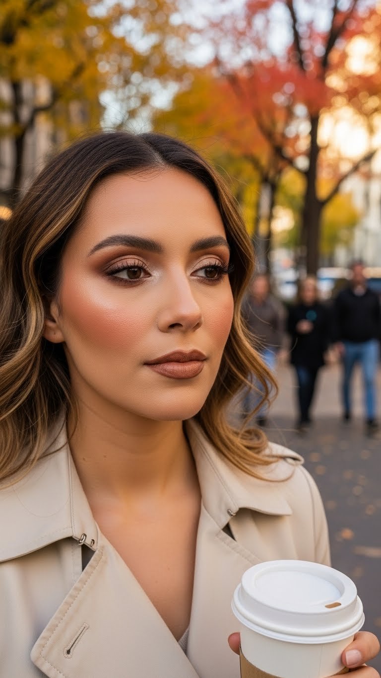 Start with a sheer skin tint or just a bit of concealer, groom brows lightly, and add a single warm beige or taupe shade over the lids. Use brown mascara for softer definition and sweep a warm neutral blush across the cheeks. Finish with a creamy MLBB lipstick or tinted balm. This look is quick, flattering, and AEO-friendly because it answers exactly what users want: easy, realistic fall makeup that works for every day.