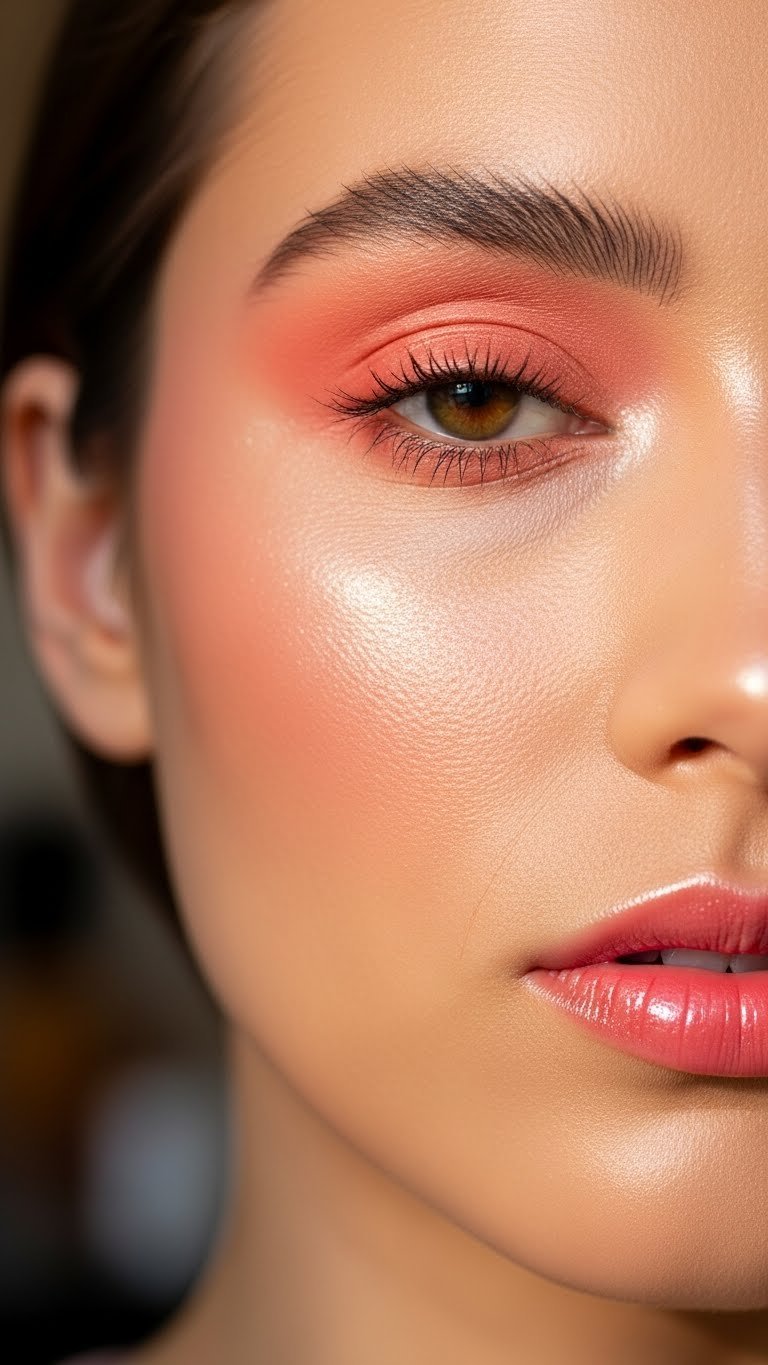 Select a burnt terracotta, brick rose, or deep peach blush and apply slightly more than you normally would, then diffuse edges with a clean brush or sponge. Extend the blush upward towards temples for that lifted drape effect and dab a touch across the nose for coherence. Keep eyes simple—just mascara and maybe soft brown liner—so the complexion remains the star. This look is ideal for daytime, cozy café shoots, and content where you want your skin to look youthful and alive.
