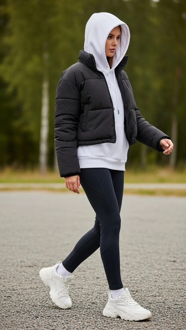 Mix athletic and casual monsters of 2026 — wear a cropped puffer vest over your oversized hoodie with compression leggings.