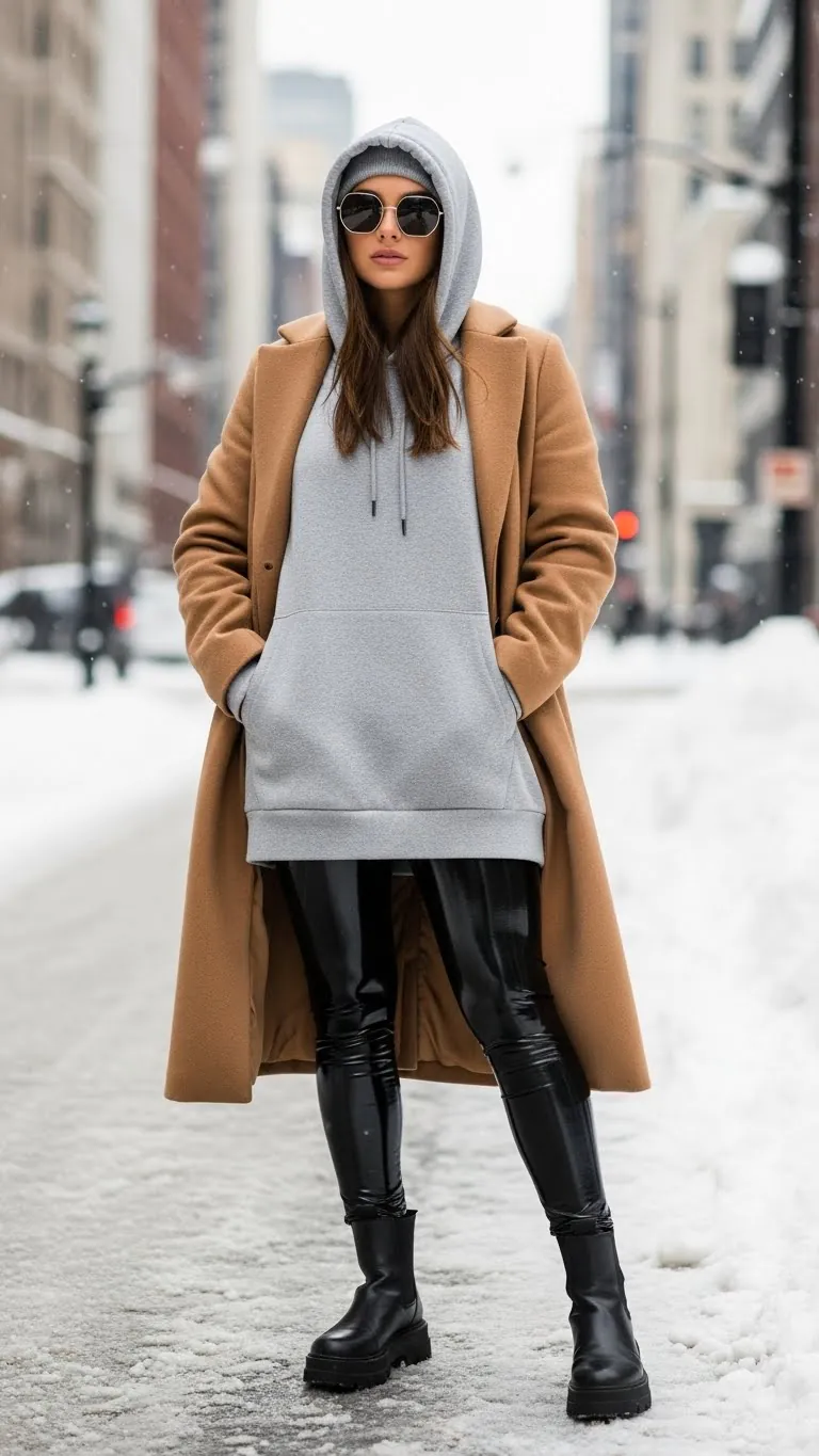 Combat chilly weather with fleece-lined leggings and an oversized sherpa hoodie. Add snow boots for practicality without losing style points.
