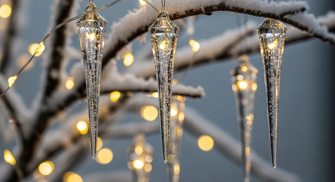 - Icicle glass set (24 pcs): highlight near light nodes and outer branches for crisp sparkle.