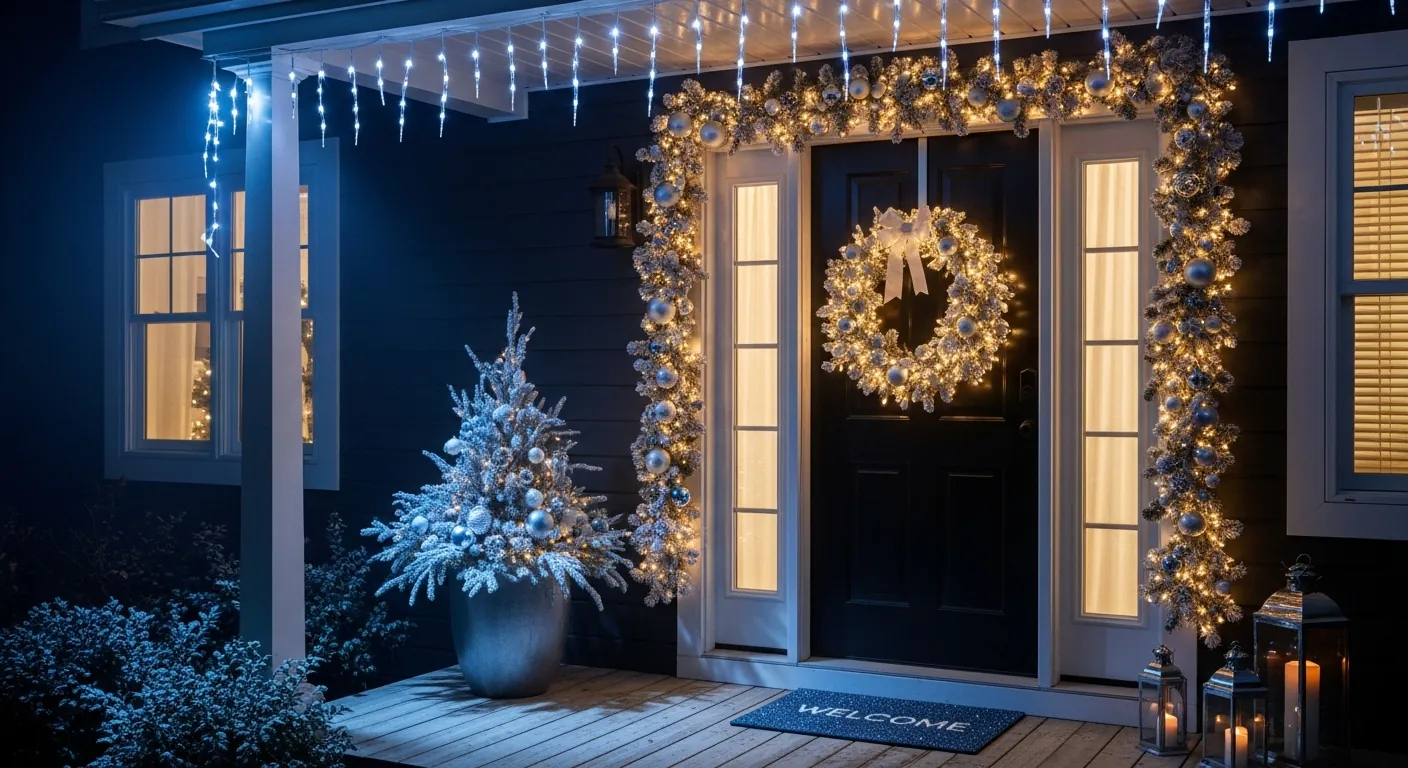 - Use icicle lights, snowflake motifs, and pre‑lit wreaths/garlands to keep the palette and textures consistent.