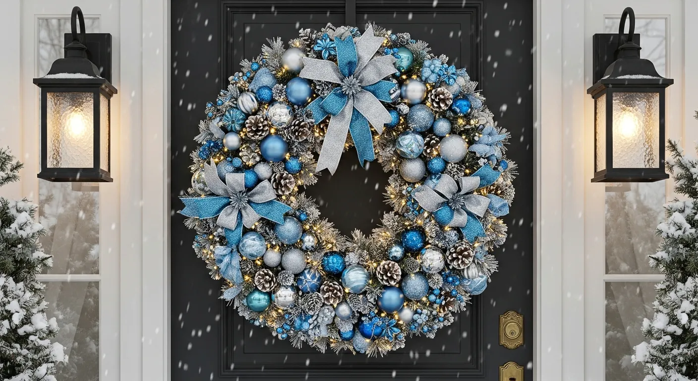 Extend your Winter Wonderland to the porch or entry with a large pre‑lit wreath that mirrors the tree’s blue‑and‑silver palette. A 30‑inch size has genuine impact on doors and mantels, especially with integrated lights for nighttime sparkle.